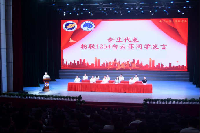 新生代表、2025级物联网工程专业白云菲同学则分享了初入校园的喜悦与憧憬,提及班助学长学姐的温暖帮助时,尽显海大“互助共进”的育人氛围,也展现了新一代海大人的朝气与思考。