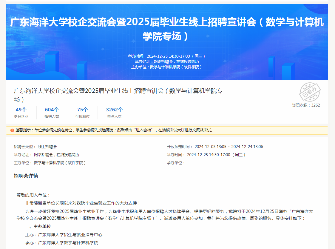 随后,北京学而思教育科技有限公司、中国联通中山市分公司、广州小马当先科技有限公司等10家企业陆续开展线上宣讲。用人单位对行业形势、用人单位特点、岗位需求等一一进行介绍。会后公司继续搭建用人单位和毕业生沟通平台,通过深入交流,让毕业生更加全面地了解用人单位、了解招聘岗位,踊跃投递求职简历。而用人单位也更充分了解到了毕业生情况,助力其更好招收到满意人才。