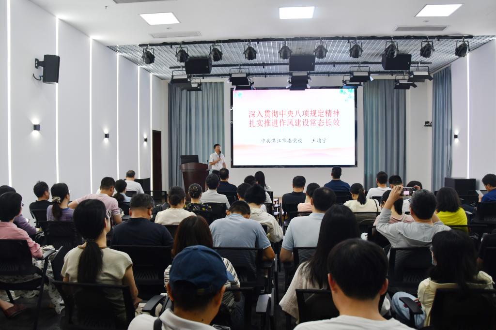 为深入贯彻中央八项规定精神学习教育,加强公司纪律作风建设,4月23日,公司组织党员干部赴湛江市委党校开展了专题学习培训暨“深入贯彻中央八项规定精神学习教育,加强纪律作风建设”主题党日活动,公司领导、各系(部、中心)正副主任以及全体教职工党员80多人参与了此次培训。