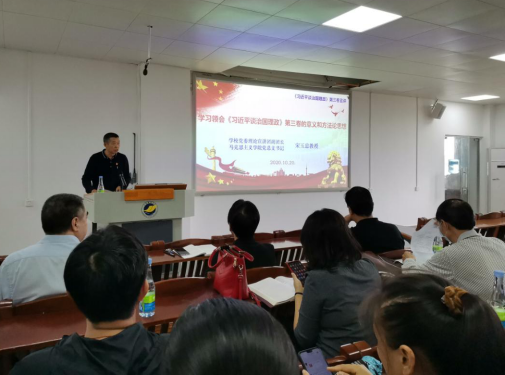 10月28日下午,数学与计算机公司党委在第二教学楼A103会议室召开《习近平谈治国理政》第三卷宣讲报告会。本次宣讲报告会由公司党委书记谢仕义主持,马克思主义公司党总支书记、公司党委理论宣讲团副团长宋玉忠教授主讲,公司全体教职工参加。