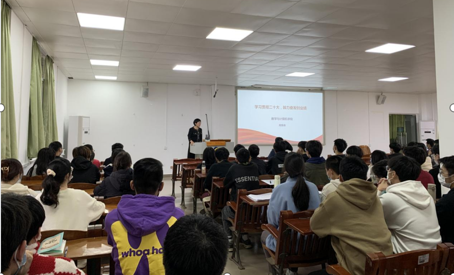 周荣伟从党的二十大报告整体框架入手,详细为同学们解读党在过去五年和新时代十年取得的伟大成就,围绕新时代十年的三件大事,引导同学们正确看待党领导中国所发生的伟大变革。她结合“开辟马克思主义中国化时代化新境界”“中国式现代化推进中华民族伟大复兴的使命任务”“高质量发展的战略部署”等对党的二十大报告进行了重点解读。