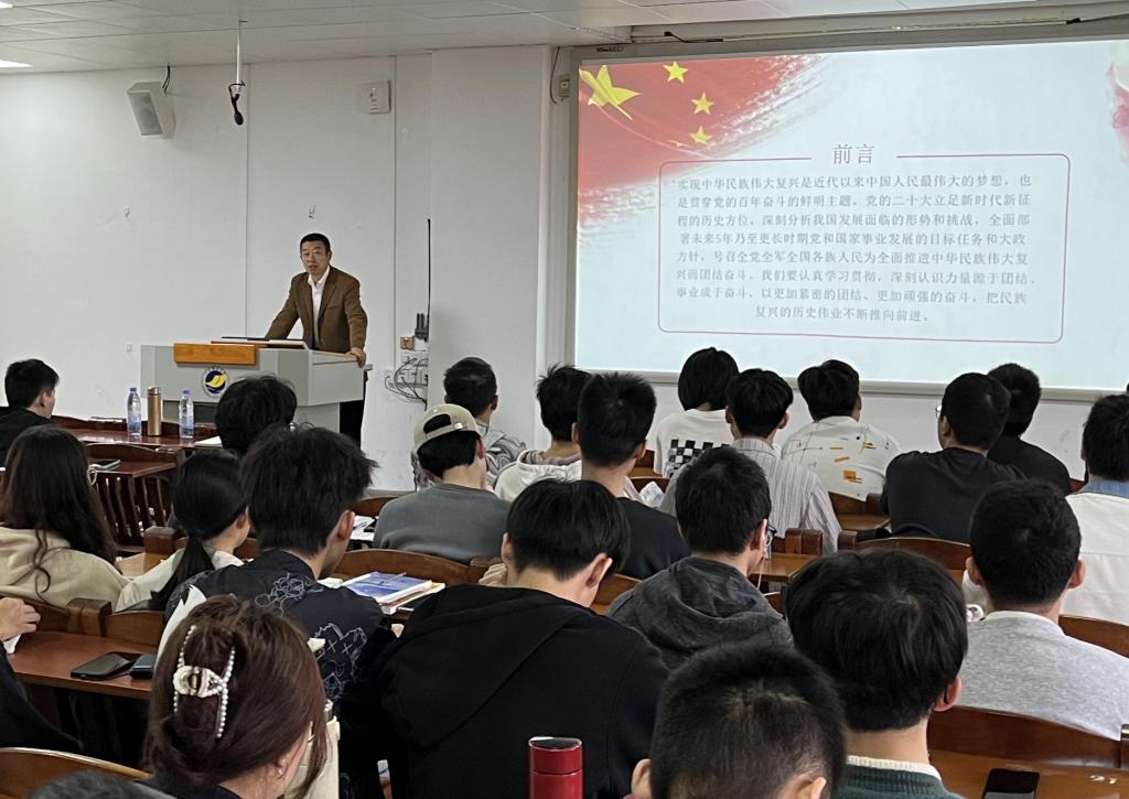 15日上午,谢仕义以“为全面推进中华民族伟大复兴而团结奋斗”为题,结合党的二十大报告讲述了团结奋斗对于我国未来克服困难和挑战,实现民族复兴的极端重要性。并从“抗美援朝战争”到“汶川地震抢险救灾”,从“两弹一星”到“北斗导航”,通过一个个生动案例讲述了中国在团结奋斗中不断克服艰难险阻,取得一个又一个成就。谢仕义指出,今天历史的接力棒交到了我们这代人手上,全体师生要紧密团结在以习近平同志为核心的党中央周围,以习近平新时代中国特色社会主义思想为指导,踔厉奋发,勇毅前行,为实现中华民族的伟大复兴而团结奋斗。