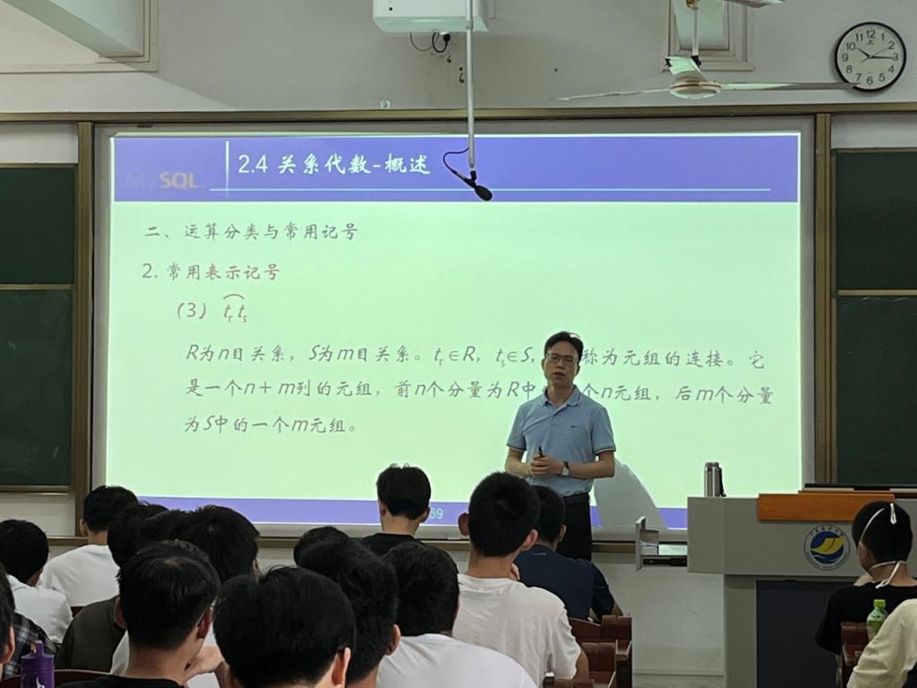 课堂上,冼远清围绕《数据库原理及应用》中的关系代数、传统综合运算、专门的关系运算等内容进行讲授,课堂上既穿插了启发式问题,也穿插了知识点练习,还有机地融入“课堂思政”元素,整个教学主题突出,结构清晰、思路清晰、内容丰富、逻辑性强,将相对枯燥的基本知识深入浅出讲解,语言表达松弛有度,声情并茂,富有感染力,得到在场观摩教师的肯定与赞赏。大家一致认为冼老师的公开课在教学内容、教学方法以及教学效果等方面均取得了较好的预期效果,对公司整个课堂教学工作具有一定的学习借鉴意义。