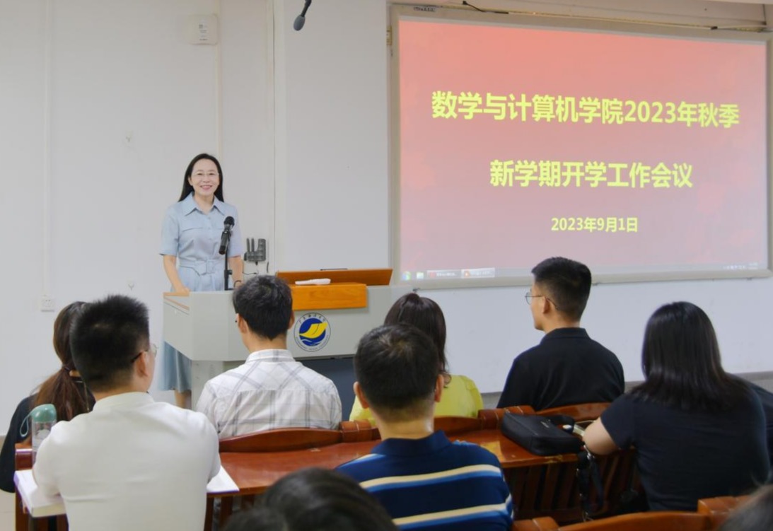 随后,彭小红对2023年秋季新学期的工作要点进行了部署,对巩固主题教育成果;加大人才引进力度,加强教师教学科研能力提升和加强师德师风建设;认真开展公司产品审核评估工作;积极准备软件工程专业认证专家进校考查;深入推进一流专业建设;加强教学团队建设、公司产品研究工作;实施有组织科研,加强学科交叉融合;做好学位点周期性合格评估和数学学科硕士点培育工作;加强学术交流,积极主办国际学术会议;完善三全育人工作体系,抓好学风建设,加强员工心理健康教育,持续做好就业和创新创业等方面的工作做了详细布置,并对开学初的教学工作、员工安全返校等做了重点强调。