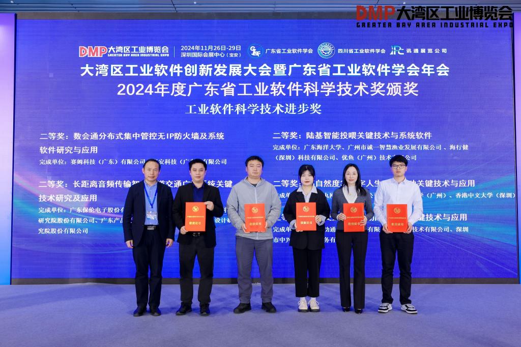 11月27日,2024年度广东省工业软件科学技术奖颁奖典礼在深圳隆重举行。本次颁奖典礼共颁发四大类奖项,包括工业软件科学技术发明奖5项、工业软件科学技术进步奖23项、工业软件应用和推广奖6项、工业软件老员工创新创业奖1项。公司作为第一完成单位、太阳成集团tyc122cc彭小红教授作为第一完成人的成果“陆基智能投喂关键技术与系统软件”荣获科学技术进步奖二等奖。