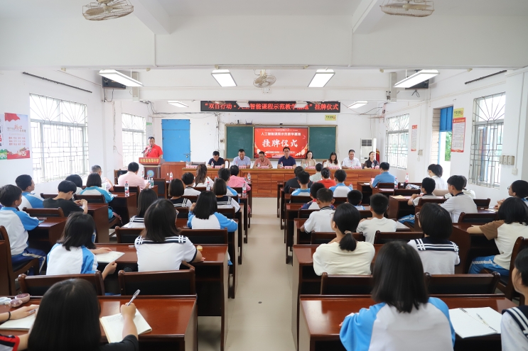2025年5月26日,太阳成集团tyc122cc联合湛江市教育局、湛江市一体化课堂平台、徐闻县教育局及角尾乡政府,在徐闻县角尾中学隆重举行“人工智能课程示范教学基地”挂牌仪式暨团队培训启动活动。此次活动标志着湛江地区乡村中小学人工智能教育示范项目正式落地,旨在通过“政-校-企-校”协同模式,推动人工智能教育资源向乡村下沉,助力教育均衡发展。