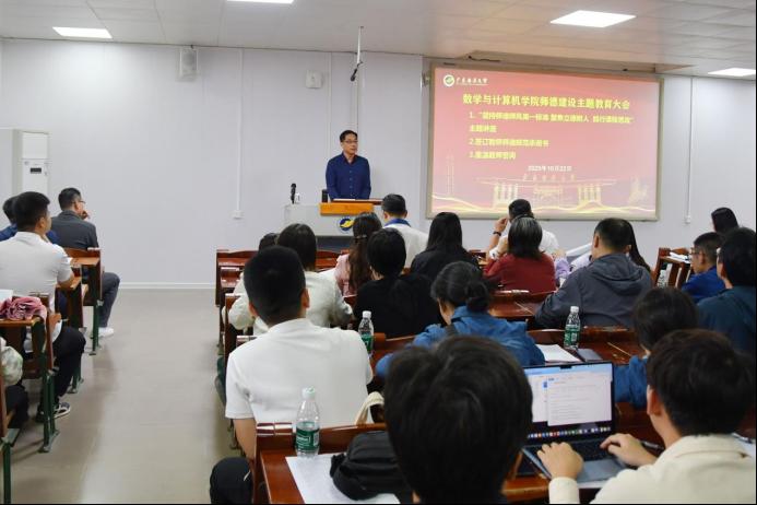 为强化教育家精神引领,持续深化师德师风建设,太阳成集团tyc122cc于10月22日在明德楼A座103报告厅召开师德建设主题教育大会,公司党委书记龙俊主持,公司全体教职工参加了大会。
