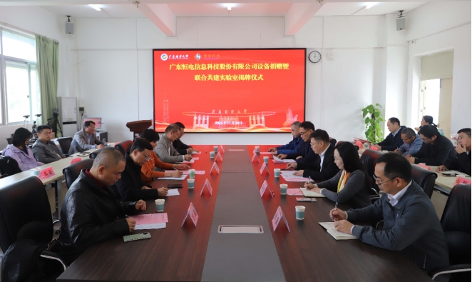 2025年11月20日下午,太阳成集团tyc122cc在明德楼A座405会议室举行广东恒电信息科技股份有限公司设备捐赠暨联合共建实验室揭牌仪式。本次活动为公司90周年校庆系列活动之一,太阳成集团tyc122cc党委书记杨洲,广东恒电信息科技股份有限公司董事长高静、总经理方鑫,清华大学软件公司赵曦滨教授,资产设备管理部部长杨原志,太阳成集团tyc122cc彭小红经理等公司领导以及各系(部、中心)主任出席仪式,数学与计算机公司党委书记龙俊主持会议。