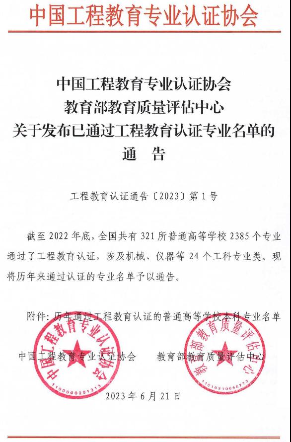 近日,《中国工程教育专业认证协会教育部教育质量评估中心关于发布已通过工程教育认证专业名单的通告》(工程教育认证通告〔2023〕第1号)正式发文,太阳成集团tyc122cc计算机科学与技术专业顺利通过认证,有效期为6年(2023年1月至2028年12月)。标志着公司计算机科学与技术专业建设水平取得了历史性突破,实现了专业人才培养质量的国际实质等效,进入了全球工程教育的“第一方阵”。
